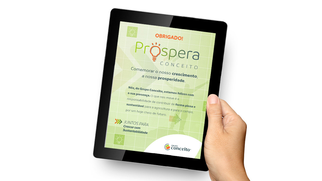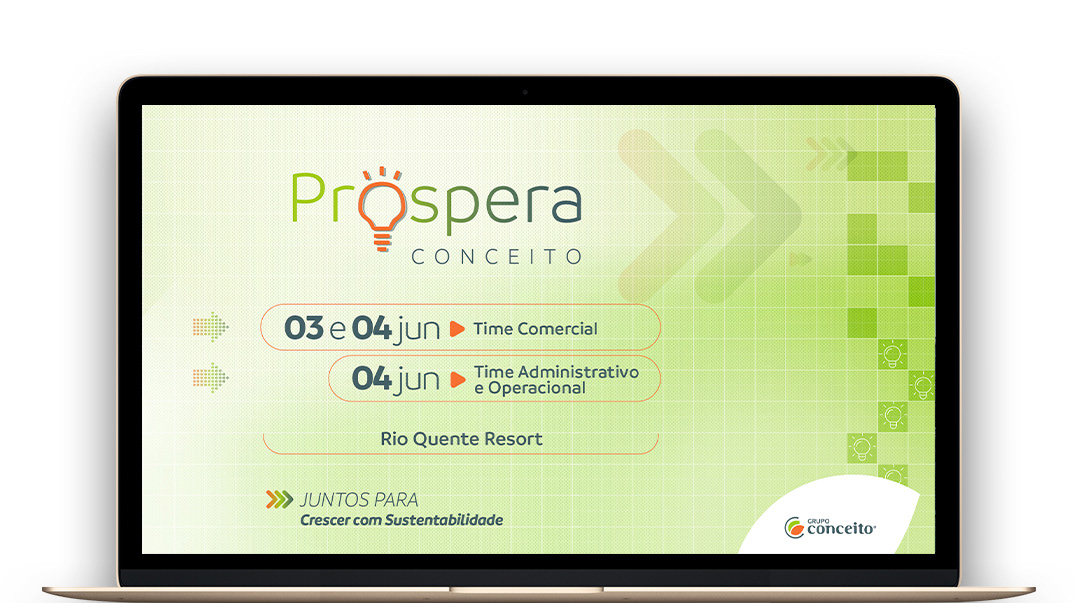Com o sucesso da Convenção 2021, a agência Mandalas, uma das detentoras da conta do Grupo Conceito, brifou novamente a BV\DSGN para a criação da Convenção de 2022. O Objetivo: reunir todos os colaboradores do Grupo e comunicar o direcionamento estratégico, motivar os profissionais e discutir os novos negócios para a safra 2022. Nessa data também foi escolhida para lançamento do propósito do Grupo Conceito. A Proposta: pelo ano repleto de incertezas, mesmo com a safra acima das expectativas, o Grupo precisava reforçar o foco, o empenho e a sustentabilidade do negócio. Em cima dessa necessidade, criamos para 2022 o PROSPERA CONCEITO,. A Solução: a marca traz as cores remanescentes do Avante (2021) e uma iconização com o objetivo de direcionar os colaboradores a entender o novo momento, o de seguir um caminho iluminado ou um caminho imaginado para atingir as metas do ano e crescer. Ter a luz, o insight, as novas ideias (o famoso Eureka de Einstein) e gerar a inovação. O Ícone: a lâmpada também traz um forte conceito de sustentabilidade. Ela mesmo precisou evoluir para atender ao mercado e se reinventar. Saiu da luz amarela e incandecente para a luz branca, fria e de Led, gerando enorme economia nas contas de luz bem como a ausência de mercúrio em sua composição e a não emissão de UV.